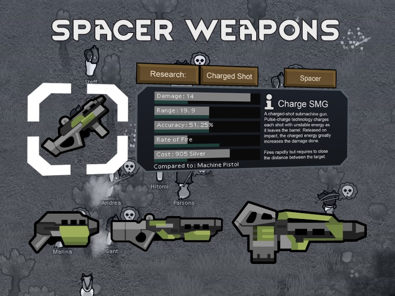 Una de mis facciones favoritas es «Greydale Defense«, no solo sus equipos se encuentran entre los más asequibles (relativamente en comparación a las otras opciones) sino que tienen una mecánica genial, en donde la misma arma, puede cambiarse y mejorarse con nuevas características. Es decir un rifle normalito, puede mejorarse en un rifle sniper, o una ametralladora según tus necesidades.