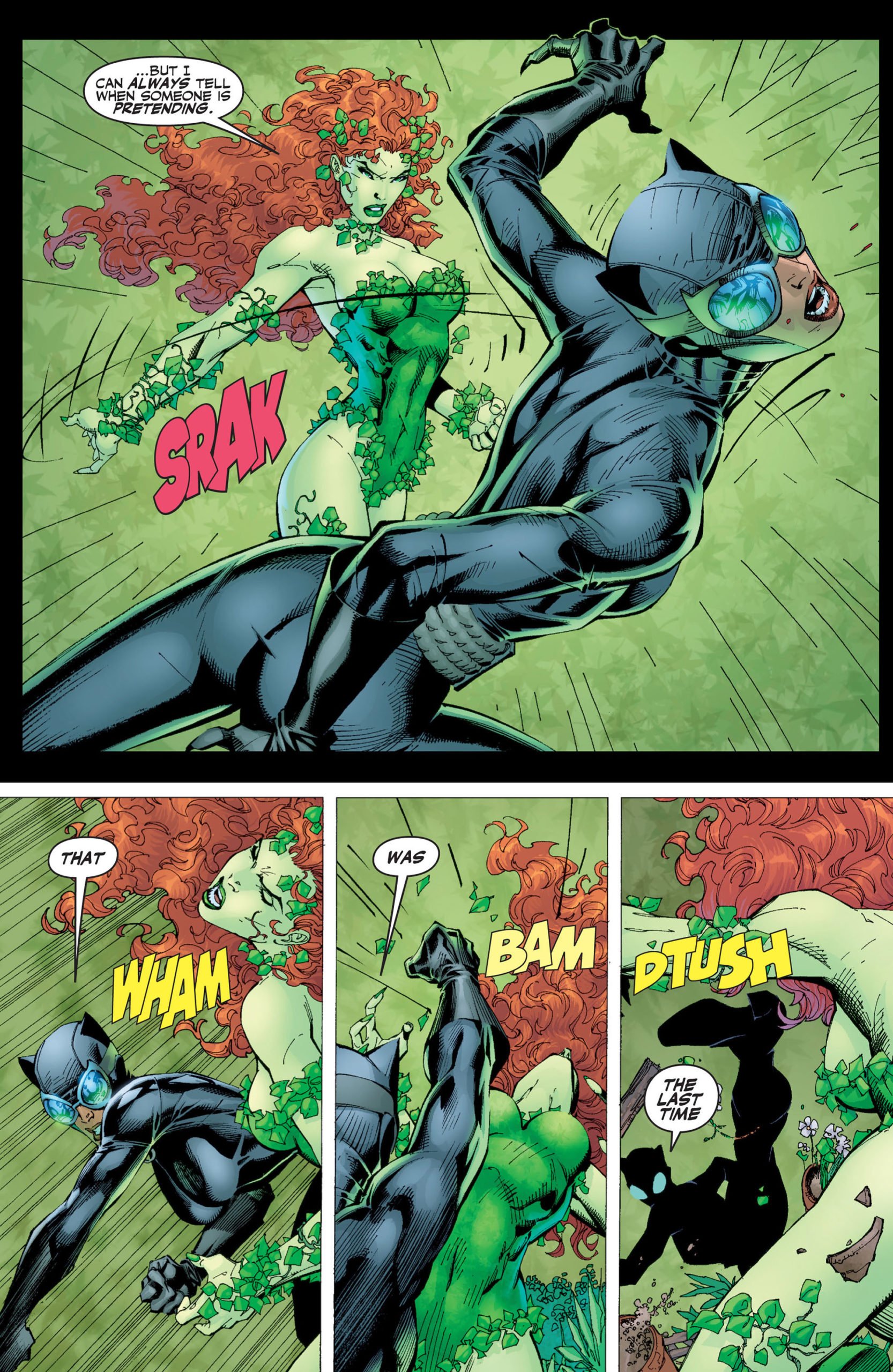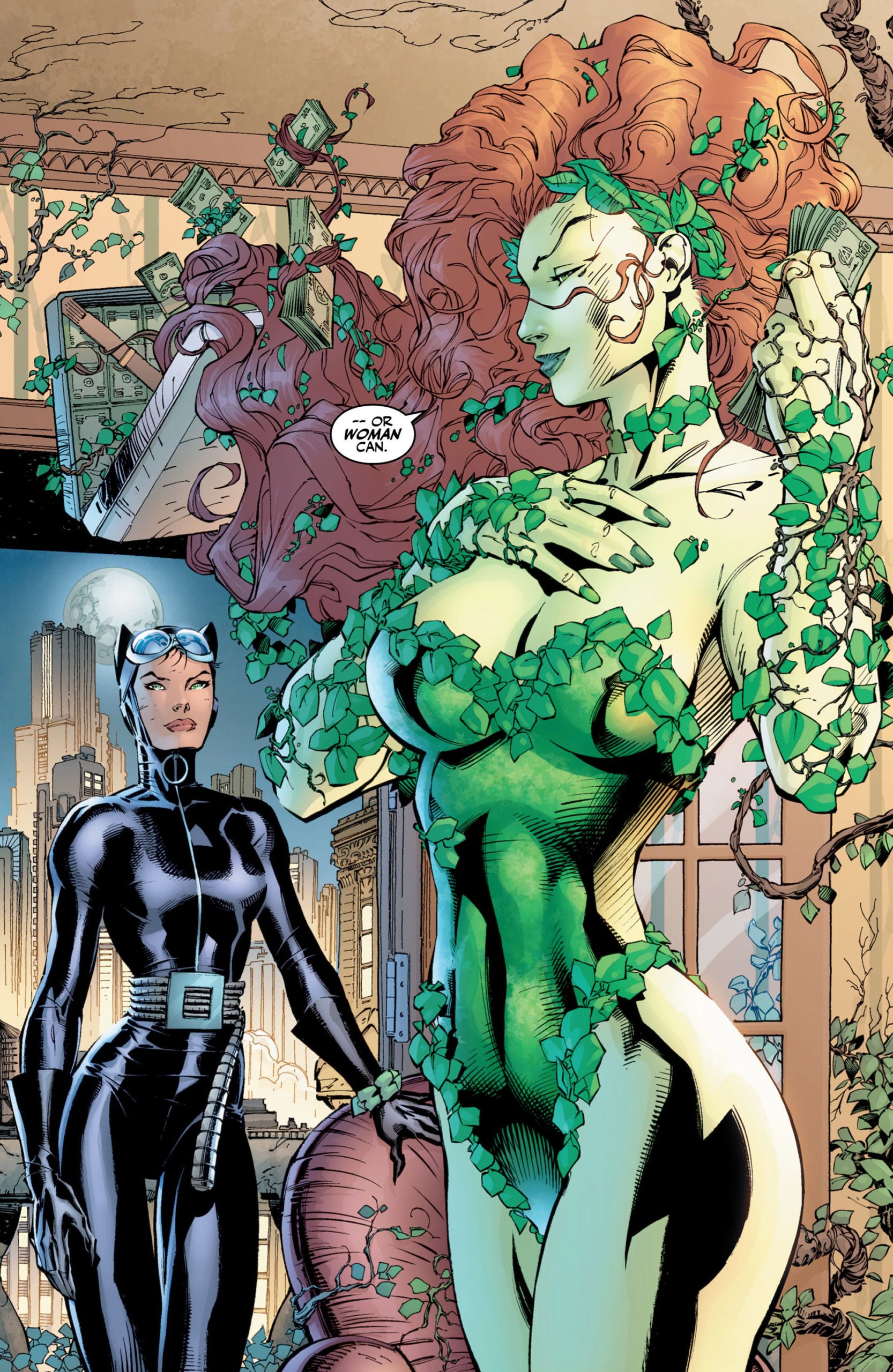 Pero en donde realmente triunfan los villanos es en frustrar la relación entre Catwoman y Batman. Dos personajes que venían «entendiendose» lentamente y cuya relación es precipitada por las acciones de Poison Ivy. El problema es que en la típica manera de Batman, esta precipitación solo sirve para que él se resista al súbito cambio y Catwoman se moleste al notar su desconfianza y la relación se termine.