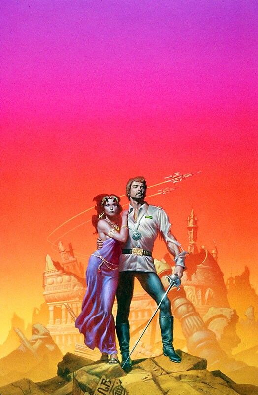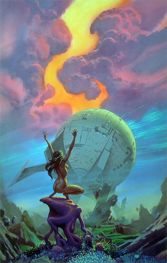 En mi caso por ejemplo lo recuerdo con mucho cariño por esta ilustración de arriba, que conocí por la portada de «Un Guijarro en el Cielo», también de Asimov. Cuando esta obra originalmente fue usada para la portada de Killashandra de Anne McCaffrey.