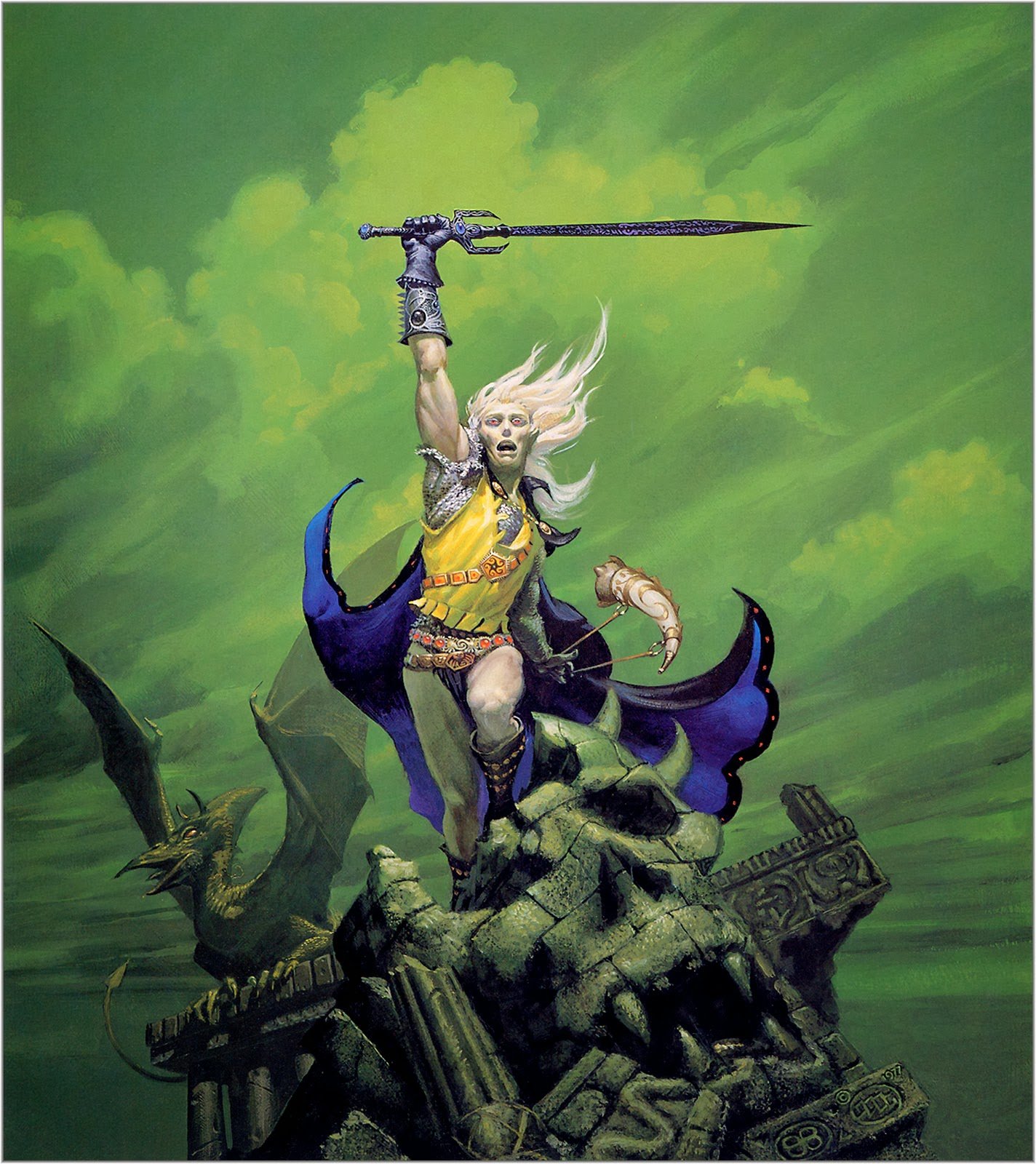 Por ejemplo esta portada para uno de los libros de Elric de Melniboné de Michael Moorcock, también es muy famosa.