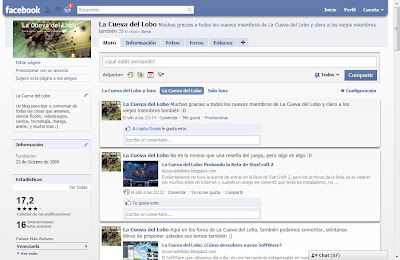 Como podemos ver en estas estadísticas, la fan page de La Cueva del Lobo indica que la mayoría de nis lectores son hombres, el país en donde tengo mas lectores es España y la ciudad del mundo en donde me leen mas es Caracas (y después dicen que nadie es profeta en su tierra) Ah y por supuesto que los fans de «La Cueva» crecen y crecen 😀
