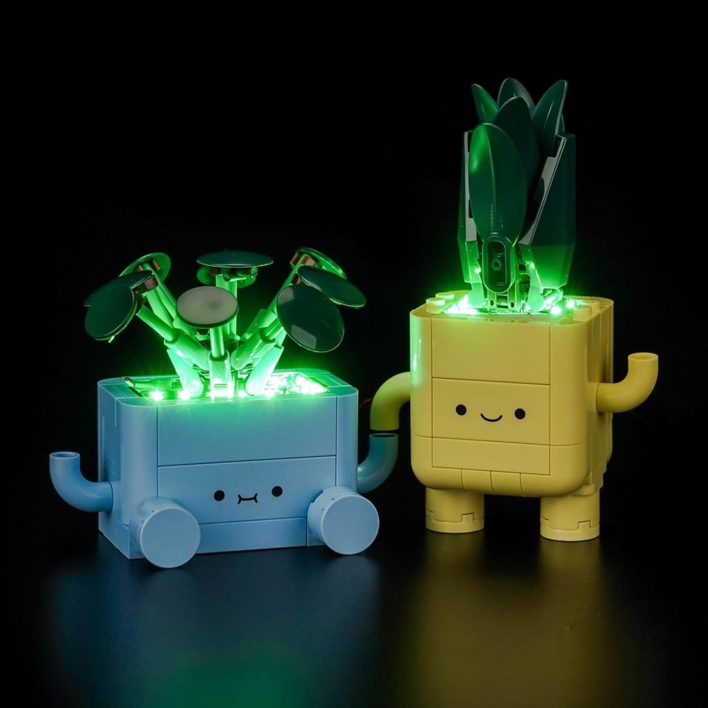 Pero la fascinación no termina ahí. Si pensaban que «Happy Plants» ya era hermoso por sí mismo, esperen a ver el efecto que la iluminación puede tener. ¡Así es! En Amazon pueden encontrar kits de luces compatibles diseñados específicamente para este set. Estos kits están pensados para realzar cada detalle, haciendo que las «Happy Plants» cobren vida con un brillo espectacular. Imaginen sus plantas LEGO delicadamente iluminadas, creando un ambiente acogedor y mágico en cualquier habitación. Es como darle una nueva dimensión a su creación, transformándola en una pieza de exhibición aún más impresionante.
