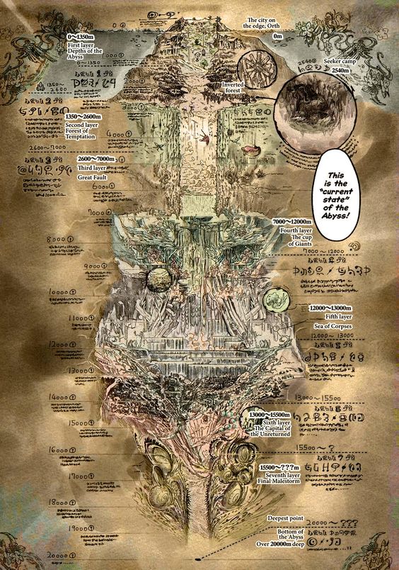 De hecho pareciera que toda la vida del pueblo gira en torno a este abismo. Por ejemplo, en el Orfanato de Belchero, los niños son entrenados desde muy pequeños para ser exploradores del abismo.