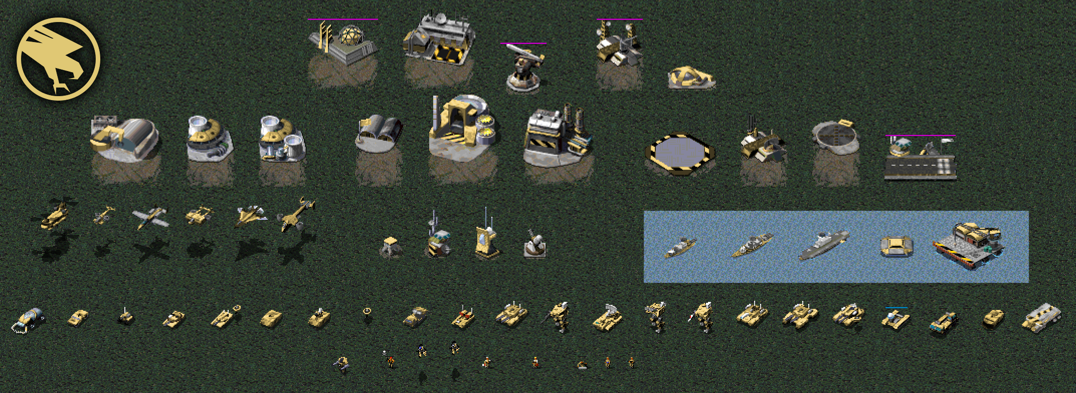 Aquí están todos, los Talon de GDI con sus Wolverine, la Black Hand de Nod con su multitud de tropas, etc. Aunque también hay que admitir que no están TODAS las sub-facciones de los aliados y los soviéticos de Red Alert, pero sí encontraremos una gran variedad. ¡Están hasta los Scrin!
