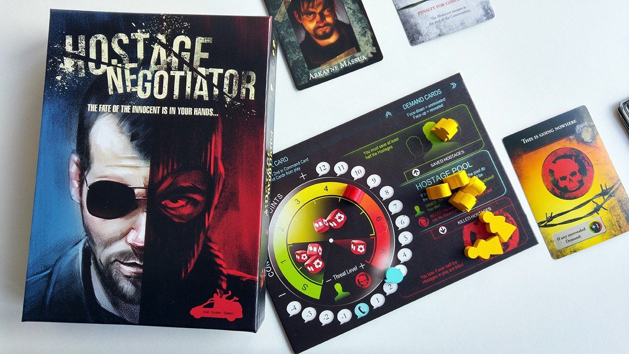 Hostage Negotiator es un juego diseñado por A.J. Porfirio, un diseñador novel cuyo trabajo previo: If I’m Going Down (2012) pasó sin pena ni gloria por el mundo de los juegos de mesa. En 2015, luego de un kickstarter en el que 1.188 patrocinadores contribuyeron con 47.092 $, Hostage Negotiator llega a las mesas de juego con una arriesgada audiencia: jugadores de juegos en solitario.